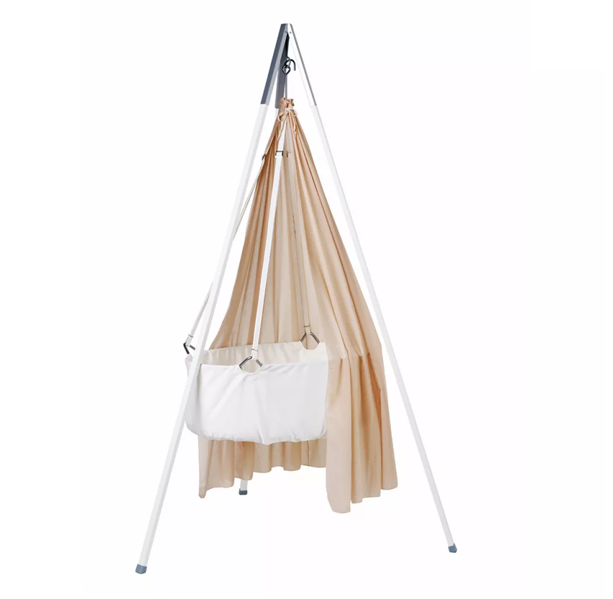Le berceau peut-être accroché au trépied, la distance se réglant très facilement, ou bien être suspendu directement au plafond via un crochet (inclus)