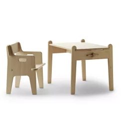 L’histoire de Carl Hansen & Søn dĂ©bute il y a plus de 100 ans au coeur du Danemark. En 1908, l’Ă©bĂ©niste Carl Hansen ouvre son premier atelier sur l’ĂŽle de Fionie. Dès l’origine, les meubles Carl Hansen sont fabriquĂ©s Ă la main, ils misent sur des savoir-faire artisanaux, la qualitĂ© des matĂ©riaux et la tradition du design scandinave. La fabrique Carl Hansen prend rapidement de l’ampleur. Reprise par son fils Holger Hansen qui lui apporte un nouveau souffle, l’entreprise familiale va entrer dans l’histoire du design grâce Ă la rencontre de Holger avec le jeune architecte Hans J. Wegner. Leur première collaboration donnera naissance Ă 4 chaises emblĂ©matiques de la marque dont la fameuse Wishbone Chair. SurnommĂ© le « Master of Chairs » Hans J. Wegner signe sa première pièce de design pour enfant avec la Peter’s Chair CH410 en 1944. Suivra la Peter’s Table CH411. En 1955, la collection Enfant de Carl Hansen s’agrandit avec un petit chef d’oeuvre signĂ© Nanna Ditzel : la chaise haute ND54.