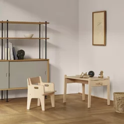 La Peter’s Chair est une crĂ©ation de Hans J. Wegner, figure de proue du design scandinave. ConsidĂ©rĂ© comme le « Master of Chairs », il est Ă l’origine de plusieurs chefs d’oeuvre du genre dont la fameuse Wishbone Chair de Carl Hansen. Hans J. Wegner crĂ©e la Peter’s Chair en 1944 pour un ami, Ă l’occasion du baptĂŞme de son fils. Toute l’originalitĂ© de la Peter’s Chair rĂ©side dans sa conception : elle a Ă©tĂ© pensĂ©e comme un jeu de construction. La chaise Peter se monte et se dĂ©monte Ă volontĂ© sans outil, comme un jeu d’enfant. Sur le mĂŞme principe, cette pièce emblĂ©matique du design enfant se voit associer une table enfant : la Peter’s Table. Dans un style Ă©purĂ© et fonctionnel propre Ă Wegner et aux designers de la mouvance Bauhaus, mais aussi sous l’influence des nouveaux principes de pĂ©dagogie de Maria Montessori, la chaise et la table enfant Peter de Carl Hansen ont Ă©tĂ© pensĂ©es pour encourager l’Ă©veil de l’enfant tout en l’accompagnant vers plus d’autonomie. La chaise et la table Peter d’Hans J. Wegner incarnent Ă merveille le design enfant du XXe siècle. Elles trouveront leur place aussi bien dans une chambre enfant que dans les autres pièces de votre intĂ©rieur. La chaise Peter’s Chair de Carl Hansen est idĂ©ale pour les enfants dès 18 mois et jusqu’Ă 6 ans environ. Cette pièce de collection pensĂ©e pour durer accompagnera vos enfants de gĂ©nĂ©ration en gĂ©nĂ©ration.