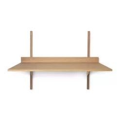 Le systĂšme modulaire Sector revisite l’Ă©tagĂšre murale du milieu du siĂšcle dans une version moderne et fonctionnelle. Le systĂšme mural Sector affirme une simplicitĂ© robuste dans un esprit naturel et minimaliste. Cette version du bureau mural Sector associe placage de chĂȘne naturel et laiton. Il est aussi disponible en placage de frĂȘne teintĂ© noir et ses supports en laiton poli existent Ă©galement en laiton noirci. Le bureau mural Sector de Ferm Living se fixe au mur avec des montants en bois massif et des vis apparentes. Il est idĂ©al pour crĂ©er un espace de travail dans une petite chambre, un hall d’entrĂ©e ou dans un coin du salon. Il s’associe parfaitement aux Ă©tagĂšres Sector qui se dĂ©clinent dans les mĂȘmes couleurs et finitions.