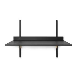 Le système modulaire Sector revisite l’Ă©tagère murale du milieu du siècle dans une version moderne et fonctionnelle. Le système mural Sector affirme une simplicitĂ© robuste dans un esprit naturel et minimaliste. Cette version du bureau mural Sector associe placage de frĂŞne teintĂ© noir et laiton. Il est aussi disponible en placage de chĂŞne naturel et ses supports en laiton poli existent Ă©galement en laiton noirci. Le bureau mural Sector de Ferm Living se fixe au mur avec des montants en bois massif et des vis apparentes. Il est idĂ©al pour crĂ©er un espace de travail dans une petite chambre, un hall d’entrĂ©e ou dans un coin du salon. Il s’associe parfaitement aux Ă©tagères Sector qui se dĂ©clinent dans les mĂŞmes couleurs et finitions.