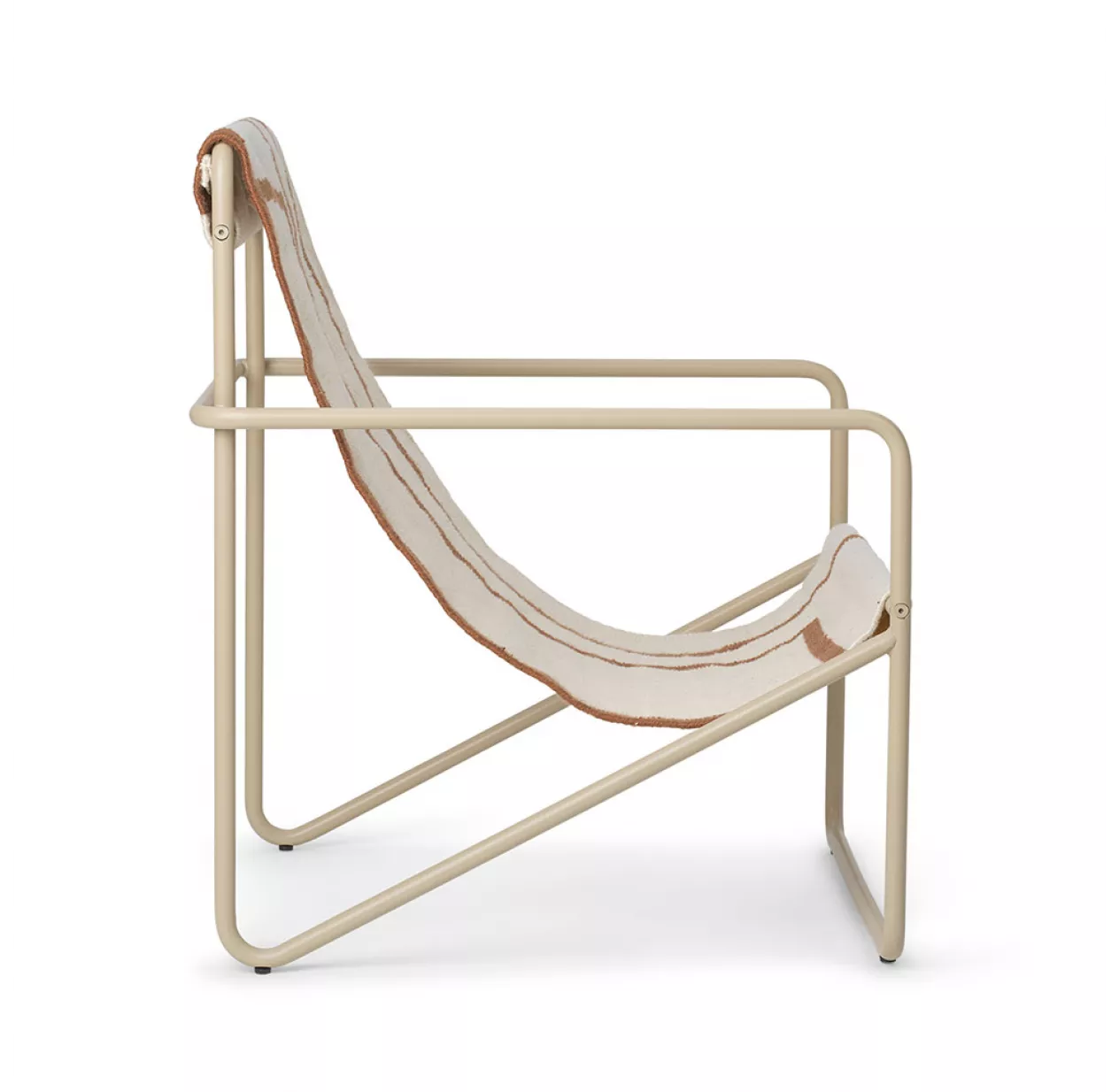 Enfin une chaise design ! Coup de coeur pour la chaise lounge Desert de Ferm Living. Une nouvelle icĂ´ne est nĂ©e avec cette chaise qui va aussi bien Ă l’intĂ©rieur qu’Ă l’extĂ©rieur et qui apporte une vraie touche design Ă votre dĂ©co : chambre ado, salon ou terrasse. Ses matĂ©riaux rĂ©sistants lui assurent une belle longĂ©vitĂ© : une structure en acier poudrĂ© associĂ©e Ă une toile en PET issu de 53 bouteilles en plastique recyclĂ©es. Ainsi sa toile ne craint ni la pluie ni l’humiditĂ©. Lavable en machine, elle est aussi très facile d’entretien. Le rĂŞve pour une chambre d’ado qui risque bien d’en voir de toutes les couleurs ! Cette chaise lounge a une petite soeur, elle se dĂ©cline en effet dans une version Mini lavec la Chaise Desert Kids de Ferm Living.