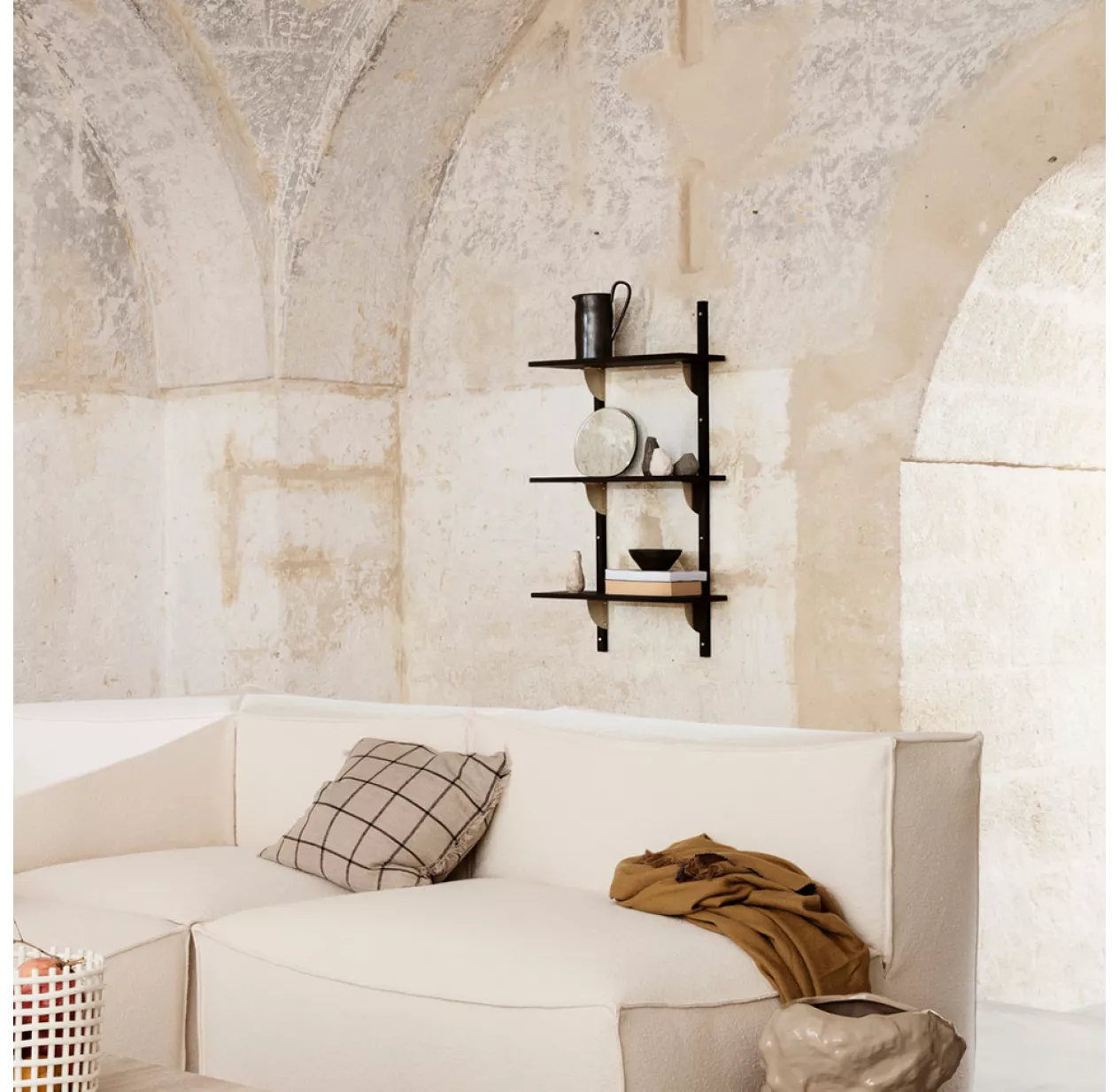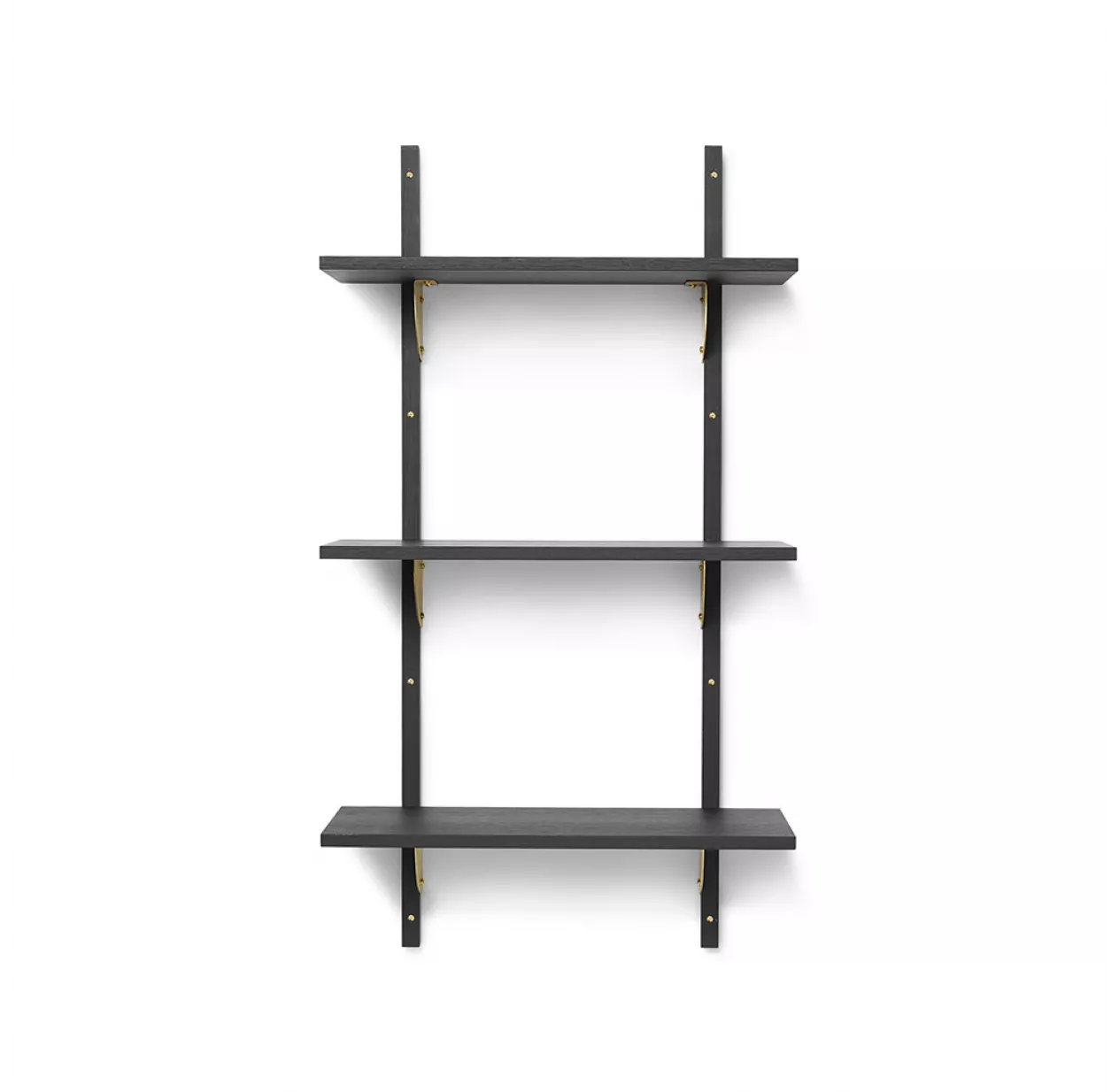 Le système modulaire Sector revisite l’Ă©tagère murale du milieu du siècle dans une version moderne et fonctionnelle. L’Ă©tagère Sector affirme une simplicitĂ© robuste dans un esprit naturel et minimaliste. Dans cette version Small et triple, l’Ă©tagère Sector associe placage de frĂŞne teintĂ© noir et laiton. Elle est aussi disponible en placage de chĂŞne naturel et ses supports en laiton poli existent Ă©galement en laiton noirci. L’Ă©tagère Triple Sector de Ferm Living se fixe au mur avec des montants en bois massif et des vis apparentes. Elle est idĂ©ale pour mettre en scène vos objets prĂ©fĂ©rĂ©s dans une chambre enfant, un salon, des plantes ou des pots de rangement dans une cuisine. Elle s’associe parfaitement au bureau mural Sector qui se dĂ©cline dans les mĂŞmes couleurs et finitions.