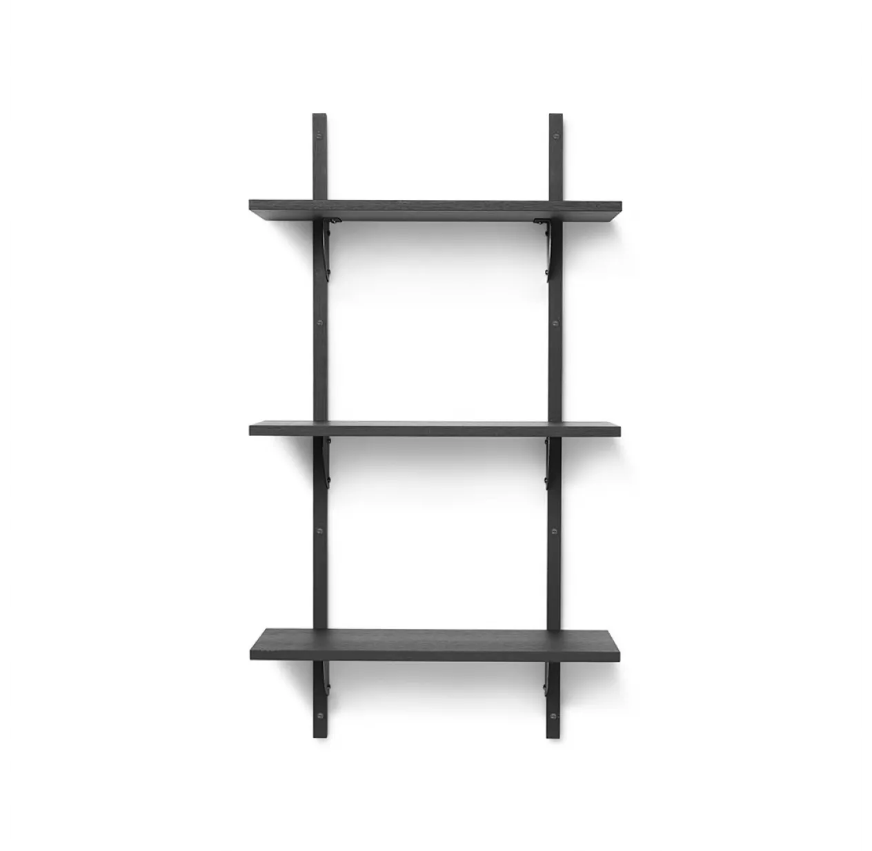 Le système modulaire Sector revisite l’Ă©tagère murale du milieu du siècle dans une version moderne et fonctionnelle. L’Ă©tagère Sector affirme une simplicitĂ© robuste dans un esprit naturel et minimaliste. Dans cette version Small et triple, l’Ă©tagère Sector associe placage de frĂŞne teintĂ© noir et laiton noirci. Elle est aussi disponible en placage de chĂŞne naturel et ses supports en laiton noirci existent Ă©galement en laiton poli. L’Ă©tagère Triple Sector de Ferm Living se fixe au mur avec des montants en bois massif et des vis apparentes. Elle est idĂ©ale pour mettre en scène vos objets prĂ©fĂ©rĂ©s dans une chambre enfant, un salon, des plantes ou des pots de rangement dans une cuisine. Elle s’associe parfaitement au bureau mural Sector qui se dĂ©cline dans les mĂŞmes couleurs et finitions.