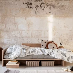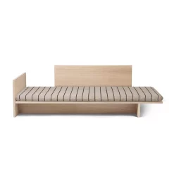 InspirĂ© du mobilier traditionnel japonais et du « low living », le lit Kona de Ferm Living offre un design Ă©purĂ© et minimal. Son dossier ainsi que sa tĂȘte de lit forment un accoudoir et un dossier confortable. Ils vous pemettent d’utiliser le lit Kona comme un daybed ou un lit d’appoint ultra dĂ©co. Son nom dĂ©rivĂ© du mot japonais « coin » parle de lui-mĂȘme : ) Ferm Living a imaginĂ© un matelas dĂ©co ainsi qu’une table d’appoint pour rendre le lit Kona plus versatile et modulable. Ainsi, la table d’appoint se glisse sous le cadre de lit pour limiter l’encombrement. Le lit Kona de Ferm Living est fabriquĂ© Ă partir de placage de chĂȘne robuste certifiĂ© FSCâą. Son panneau arriĂšre se fixe d’un cĂŽtĂ© comme de l’autre pour s’adapter Ă votre intĂ©rieur.