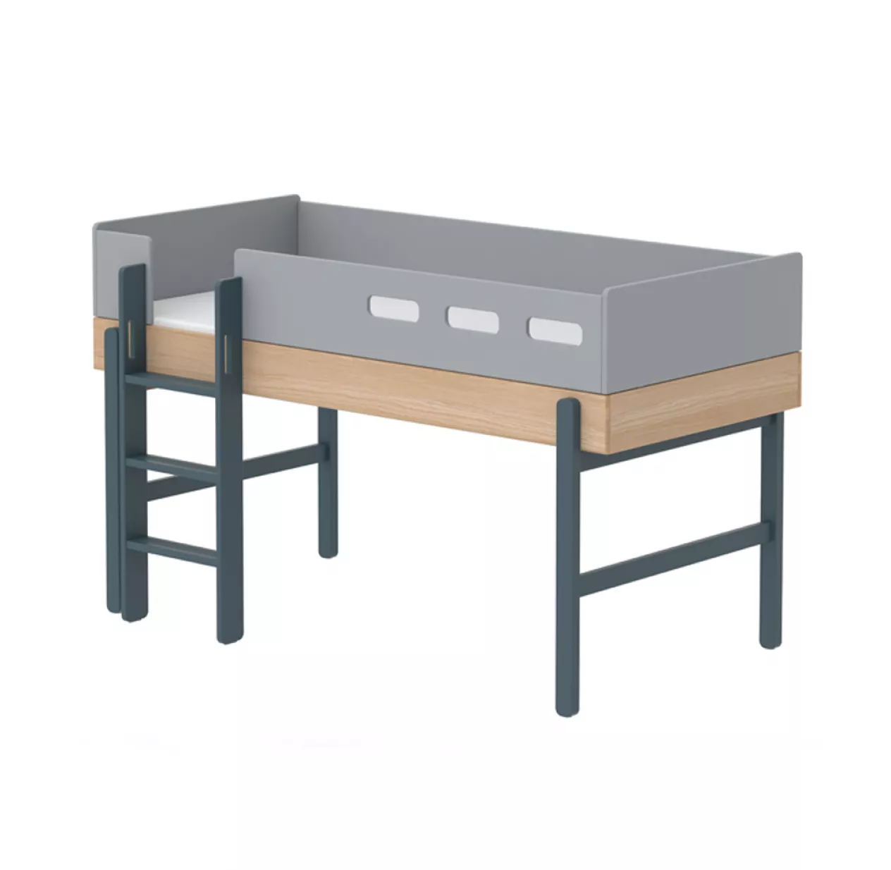 Les pieds couleur blueberry qui transforment le lit mi-hauteur de votre enfant en lit simple sont disponibles en option.