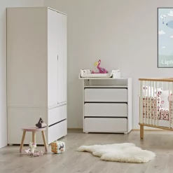 Cette table Ă langer Flexa Baby se compose d’une commode Ă 3 tiroirs dont un avec des compartiments et le plan Ă langer pivote Ă 90° degrès. On aime son design sobre et contemporain. Vous pouvez ajouter un des matelas Ă langer, disponible en option.