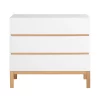 La commode Gustavienne propose 3 grands tiroirs ornĂ©s d’anneaux dorĂ©s, elle s’associe au plan Ă langer Gustavienne disponible en option pour se transformer en commode Ă langer, mais aussi au lit bĂ©bĂ©, Ă l’armoire et Ă la table Ă langer, pour constituer une chambre bĂ©bĂ© complète.