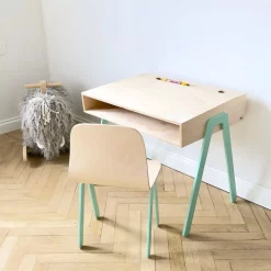 La chaise enfant qui accompagne le bureau est également en multiplis de bouleau FSC et piètement aluminium. Vos enfants apprécieront sa maniabilité !
