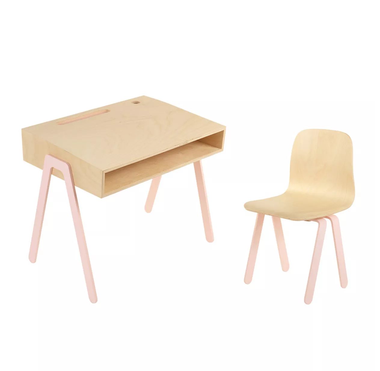 La chaise enfant qui accompagne le bureau est également en multiplis de bouleau FSC et piètement aluminium. Vos enfants apprécieront sa maniabilité !