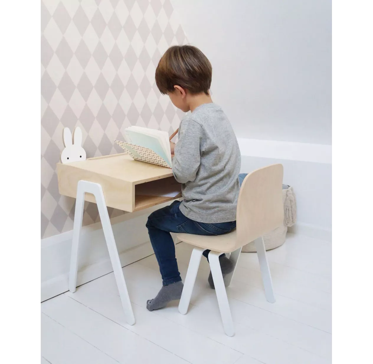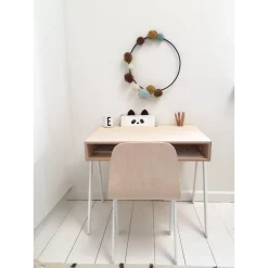 La chaise enfant qui accompagne le bureau est également en multiplis de bouleau FSC et piètement aluminium. Vos enfants apprécieront sa maniabilité !