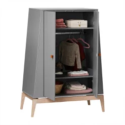 Cette petite armoire 2 portes dont les lignes Ă©purĂ©es jouent avec les obliques appartient Ă la toute nouvelle collection Luna de Leander. L’armoire basse Luna offre un rangement gĂ©nĂ©reux avec une tringle et 2 Ă©tagères amovibles. Vous pouvez lui associer la commode et le lit bĂ©bĂ© pour une chambre complète d’esprit scandinave.