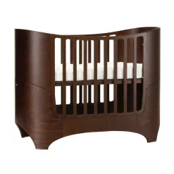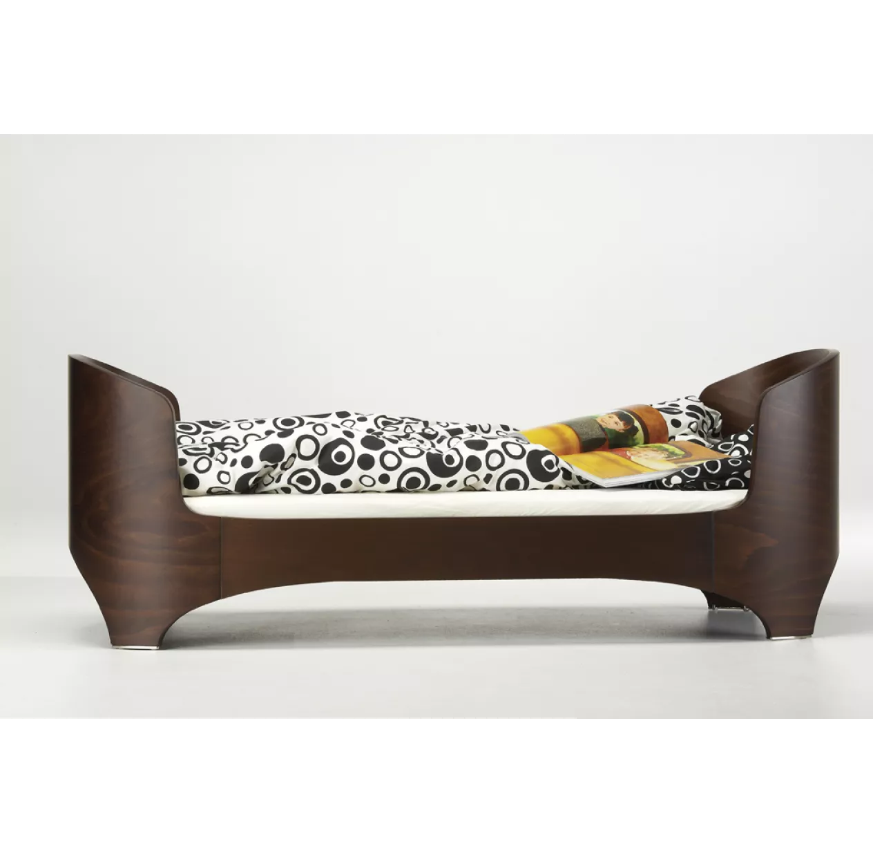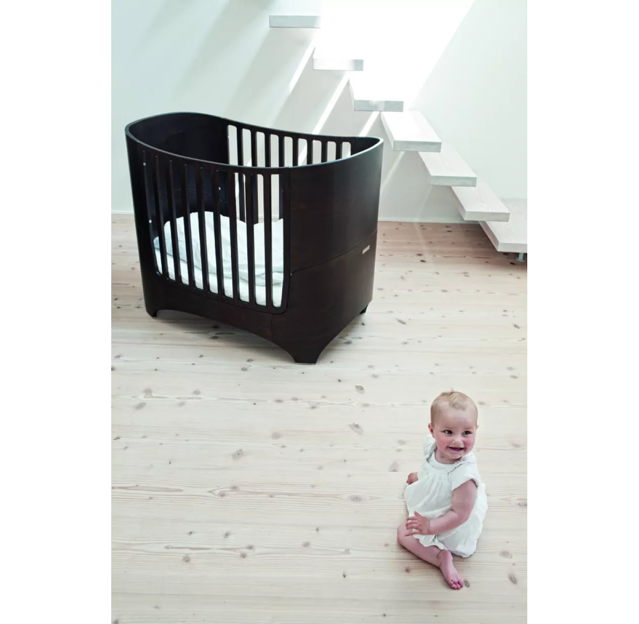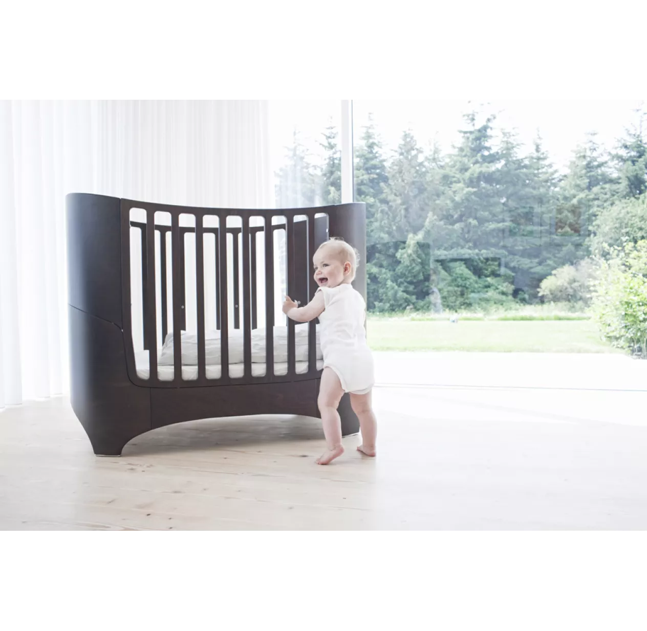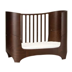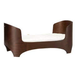 Le lit évolutif Leander a été primé à de nombreuses reprises pour son design alliant à merveille beauté et fonctionnalité. Ce lit évolutif offre 4 configurations: – 0 à 5 mois: un lit bébé à barreaux avec un matelas en position haute (70 x 120 cm). – 5 mois à 2 ans: un lit bébé à barreaux avec un matelas en position basse (70 x 120 cm). – 2 ans à 3 ans: un lit banquette (70 x 120 cm) qui permet à l’enfant de sortir tout seul de son lit. – 3 ans à 8 ans: un lit junior (70 x 150 cm). Le kit de conversion et l’extension de matelas sont fournis à l’achat. Le lit évolutif Leander est en bois scandinave de haute qualité. Le matelas est en mousse haute résilience, coutil en laine thermo ouatinée traité écotex. La couverture du matelas a suivi un processus hypo-allergénique, elle est lavable à 60°C. Le designer Stig Leander Nielsen utilise la technique scandinave du bois cintré pour créer une forme de mobilier « organique »: Tout en rondeurs, il évolue pour s’adapter aux besoins de l’enfant grandissant. Stig Leander Nielsen pratique le design en puriste, c’est toujours la fonction qui engendre la forme. Il explique par exemple qu’un enfant se sent plus en sécurité dans un lit aux formes courbes, ces dernières présentent l’avantage de limiter les accidents en évitant les chocs frontaux.