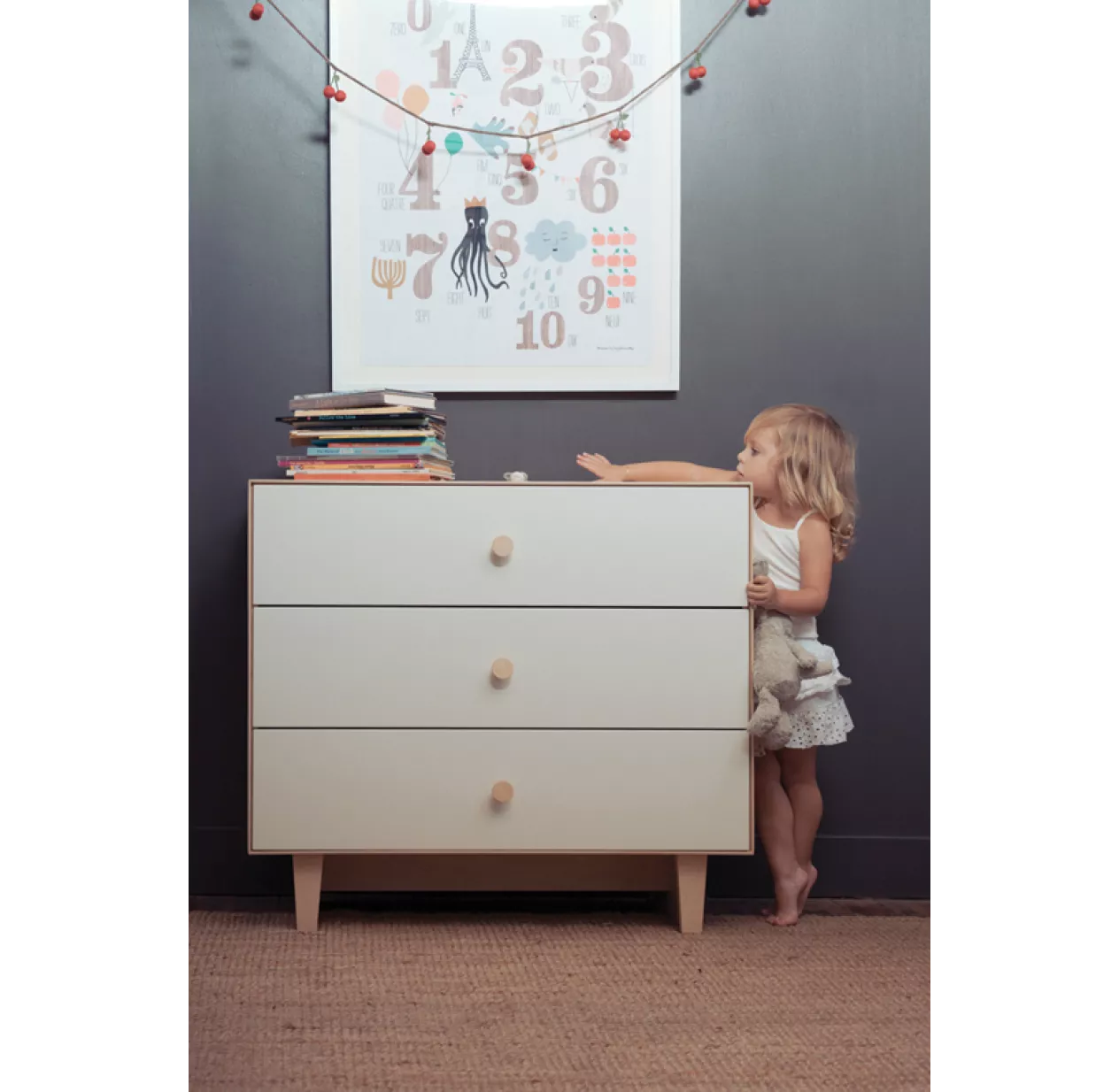 Oeuf NYC Commode Merlin Rhea 3 Tiroirs – Blanc/Bouleau