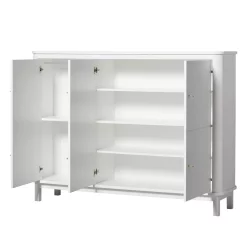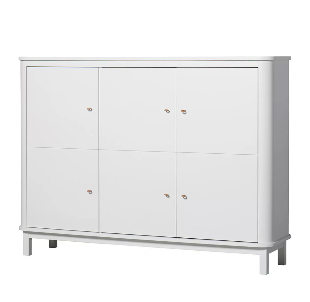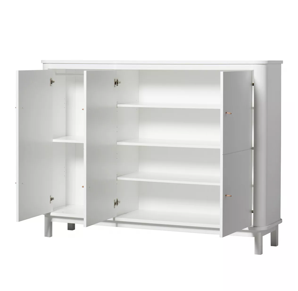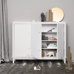 L’armoire multi-rangement est disponible avec les pieds en chĂŞne massif ou en bouleau laquĂ© blanc.