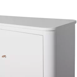 Cette jolie armoire multi-rangement blanche de la collection Wood est faite pour la chambre de votre enfant. Avec ses lignes arrondies, elle apportera du charme et de la poésie dans la chambre. Cette armoire est fabriquée artisanalement dans la tradition du design scandinave. On craque pour les poignées en cuir fabriquées à la main qui apportent à la commode un joli petit détail. Elle possède des petits portants ronds sur les côtés, extensibles qui se tirent facilement, pour suspendre des vêtements.