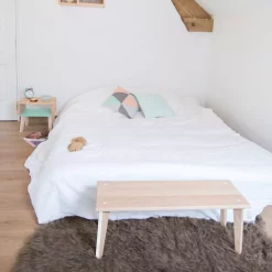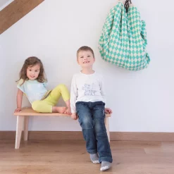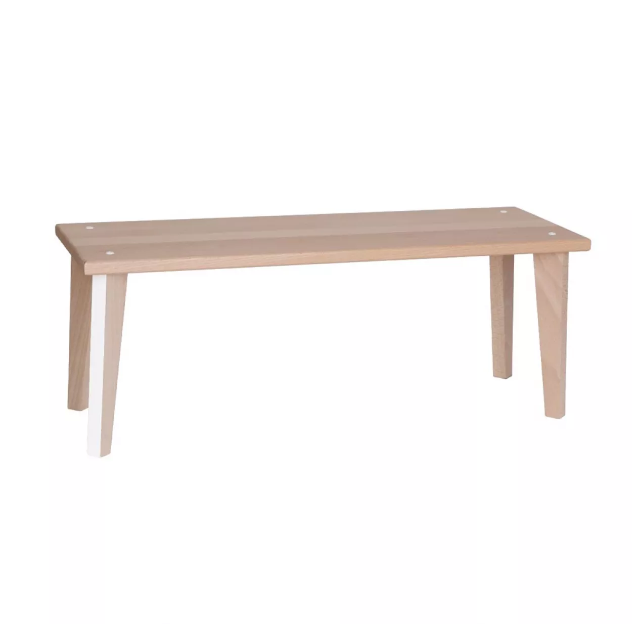 Banc pour enfant en hêtre massif. Sa robustesse permet de recevoir non seulement un ou 2 enfants mais aussi de permettre à un parent de s’assoir à côté de l’enfant ! Il pourra aussi trouver sa place dans une entrée ou en bout de lit. 1 face de pied est peinte. Plusieurs coloris au choix.