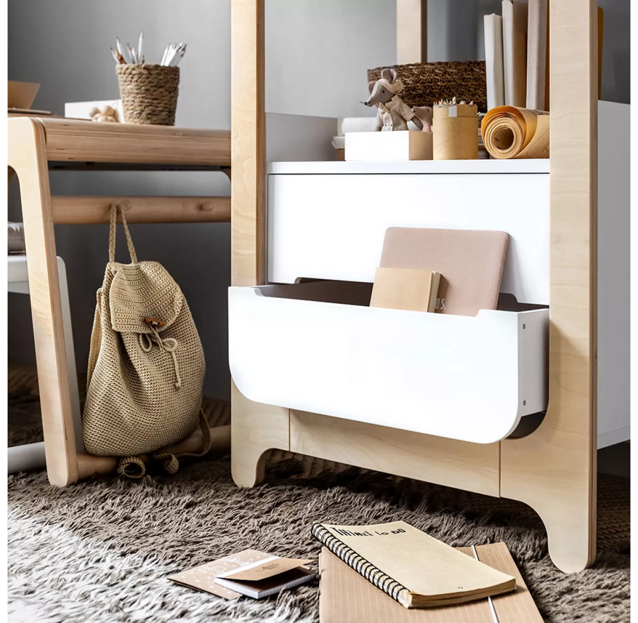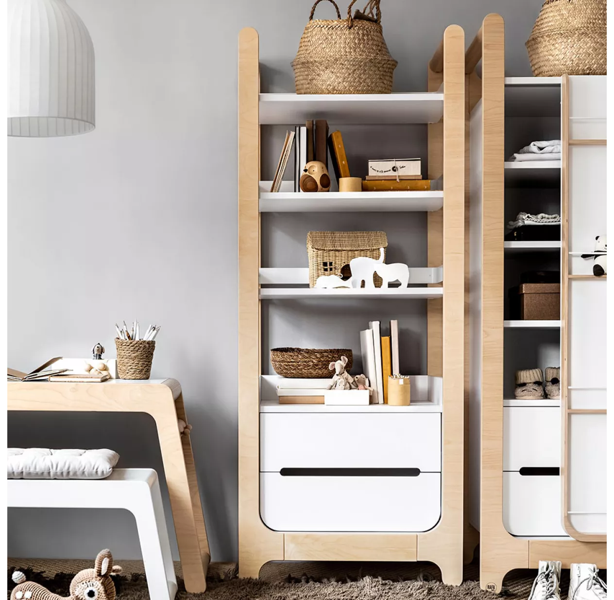 Gros coup de coeur pour la toute nouvelle biliothèque H Bookcase de Rafa Kids ! Son design original associe deux tiroirs et 3 étagères. Des atouts précieux pour un meuble de rangement optimisé. La bibliothèque H Bookcase est idéale dans une chambre enfant comme meuble de rangement. Ses étagères bordées de barrières assurent un bon maintien des livres et petits objets. Le design ludique de la bibliothèque H Bookcase Rafa Kids sera aussi apprécié dans une chambre enfant ou une chambre ado. Idéale en complément du bureau K Desk ou de la B Table pour garder tous ses classeurs et dossiers à portée de main ! Casque de musique, luminaire, guirlande lumineuse ou encore mobile, viendront agrémenter la structure de cette biliothèque enfant à la fois fonctionnelle et esthétique.