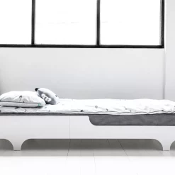 Le lit enfant A Teen est livré avec son matelas en 75 x 200 cm, il présente un style épuré et linéaire très contemporain, qui laisse apparaître la tranche du matelas justement.