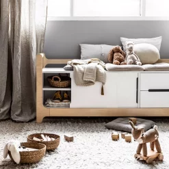 Enfin un rangement de chambre enfant mâlin ! Le H Cabinet de Rafa Kids est un meuble bas qui convient aux enfants dès le plus jeune âge. On aime son cĂ´tĂ© versatile qui caractĂ©rise d’ailleurs beaucoup de meubles Rafa Kids. Conçus pour durer, ils Ă©voluent avec votre enfant et s’adaptent Ă leurs besoins. Le meuble de rangement H Cabinet est aussi un banc, idĂ©al pour ranger jouets et livres, il peut Ă©galement accueillir des vĂŞtements dans une chambre enfant, des chaussures dans un hall d’entrĂ©e et plein d’autres choses pour rĂ©pondre Ă vos diffĂ©rents projets d’amĂ©nagement. Gros coup de coeur donc pour le H Cabinet de Rafa Kids. Son design original associe deux tiroirs et 2 portes sur glissière. Des atouts prĂ©cieux pour un meuble de rangement optimisĂ©.
