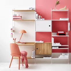 Vous pouvez également rajouter les étagères pour magazines, les étagères métalliques ou en bois, le plateau de bureau et tous les autres rangements modulables String. Vous pouvez aussi mélanger les couleurs.