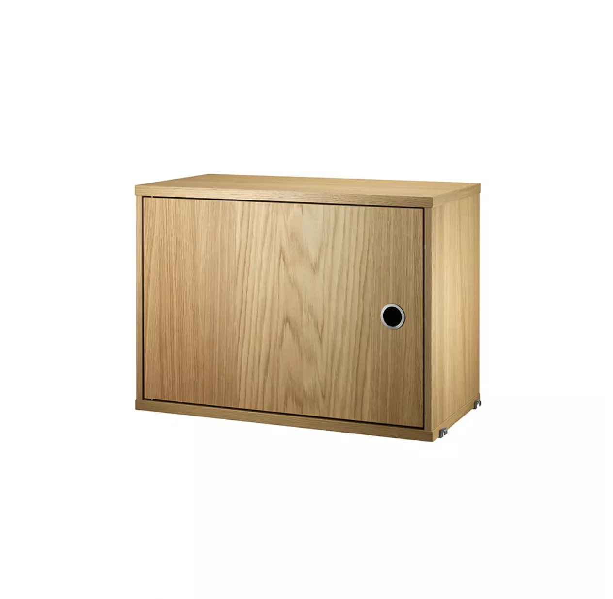 STRING est un système modulable d’Ă©tagères murales imaginĂ© par Nisse Strinning en 1949. Ce caisson en chĂŞne 1 porte de 58 cm de large s’adapte aux portants muraux et portants au sol String. Vous pouvez crĂ©er votre propre composition murale grâce Ă ce caisson et crĂ©er un maximum de rangements. La porte peut ĂŞtre montĂ©e de chaque cĂ´tĂ© du caisson. Le caisson se compose d’une Ă©tagère intĂ©rieure ajustable et les dimensions intĂ©rieures sont les suivantes : l54 x p26 x h38 cm.
