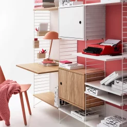 Vous pouvez également rajouter les étagères pour magazines, les étagères métalliques ou en bois, le plateau de bureau et tous les autres rangements modulables String. Vous pouvez aussi mélanger les couleurs.