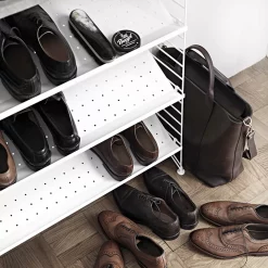 Grâce à cette étagère blanche en métal qui s’adapte aux portants muraux et portants au sol String de 30 cm de profondeur, vous pourrez ranger vos chaussures en toute simplicité. N’hésitez plus ! Créez votre propre composition murale.
