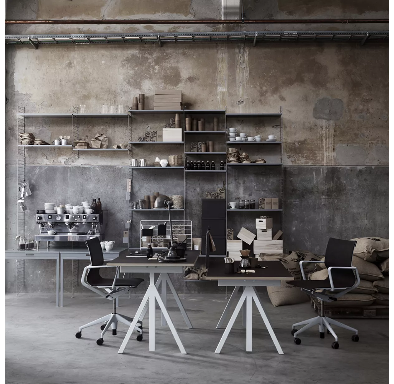 Vous pouvez également rajouter les étagères pour magazines, les étagères métalliques, la table murale pliante et tous les autres rangements modulables String. Vous pouvez aussi mélanger les couleurs.