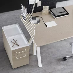 Vous avez la possibilitĂ© d’accrocher sur ce panneau, le pack de 3 petits pots de rangement String ou d’enfiler la housse gris anthracite pour crĂ©er votre propre espace de travail. Ils sont disponibles en option.