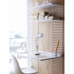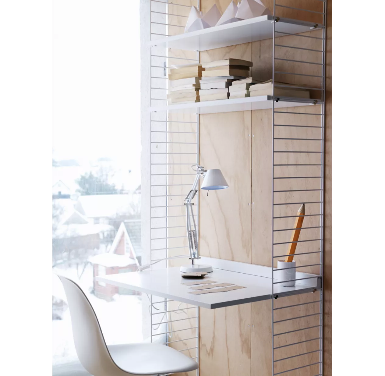 Ce plateau de bureau blanc s’adapte aux portants muraux et portants au sol String. N’hĂ©sitez plus ! CrĂ©ez votre propre composition murale.