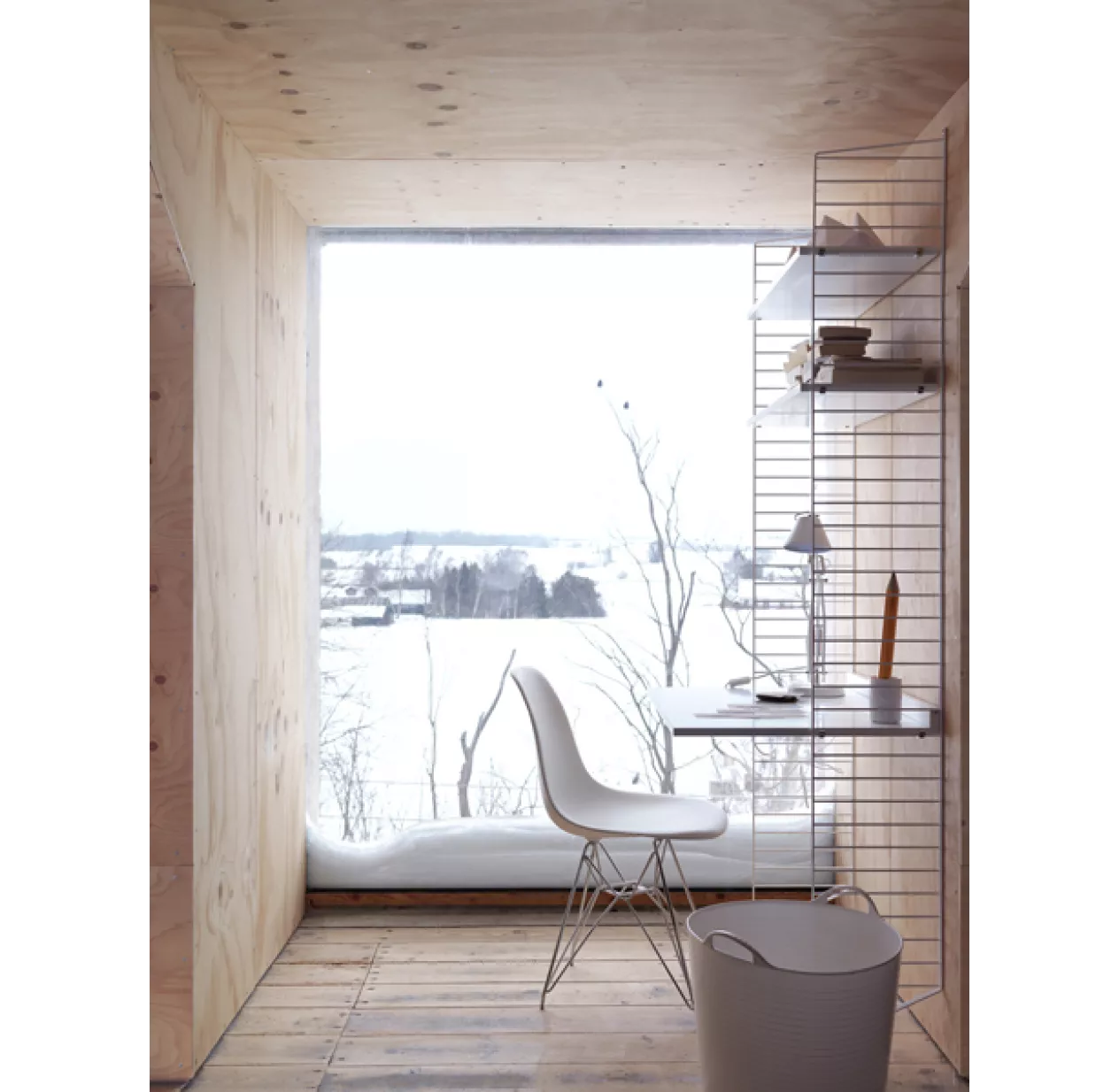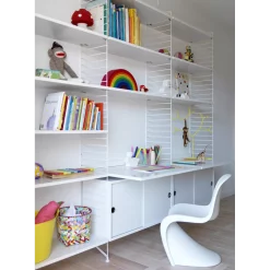 Vous pouvez également rajouter les caissons de rangement, les étagères pour magazines, les étagères métalliques ou en bois, la table murale pliante et tous les autres rangements modulables String. Vous pouvez aussi mélanger les couleurs.