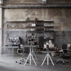 Vous pouvez également rajouter les caissons de rangement, les étagères pour magazines, les étagères métalliques ou en bois et tous les autres rangements modulables String. Vous pouvez aussi mélanger les couleurs.