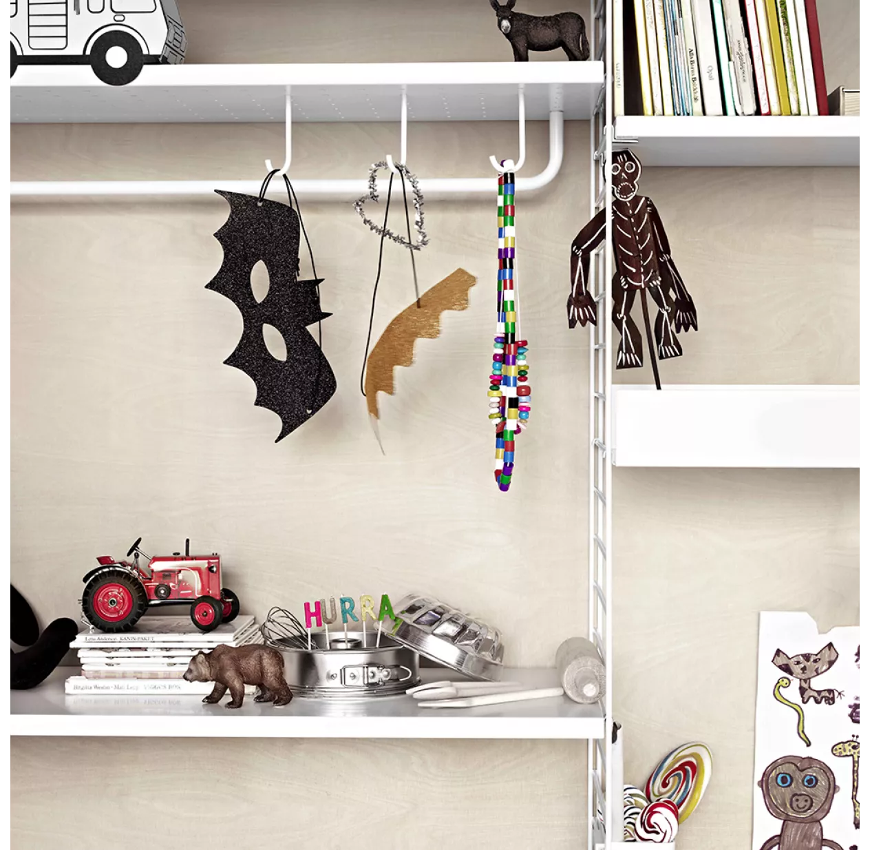 Grâce à cette tige blanche de 78 cm qui s’adapte uniquement aux étagères en métal String, vous pourrez suspendre ce que vous voudrez.