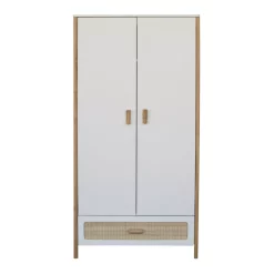 L’armoire 2 portes Océania de Théo offre un vaste espace de rangement avec penderie et étagères ainsi qu’un tiroir, Son design sobre et épuré est idéal pour une chambre enfant durable. En associant subtilement bois et rotin dans ses collections de mobilier enfant, la marque Théo propose un style de chambre à la fois contemporain et rétro qui apporte un vent de fraîcheur dans l’univers de la déco enfant.