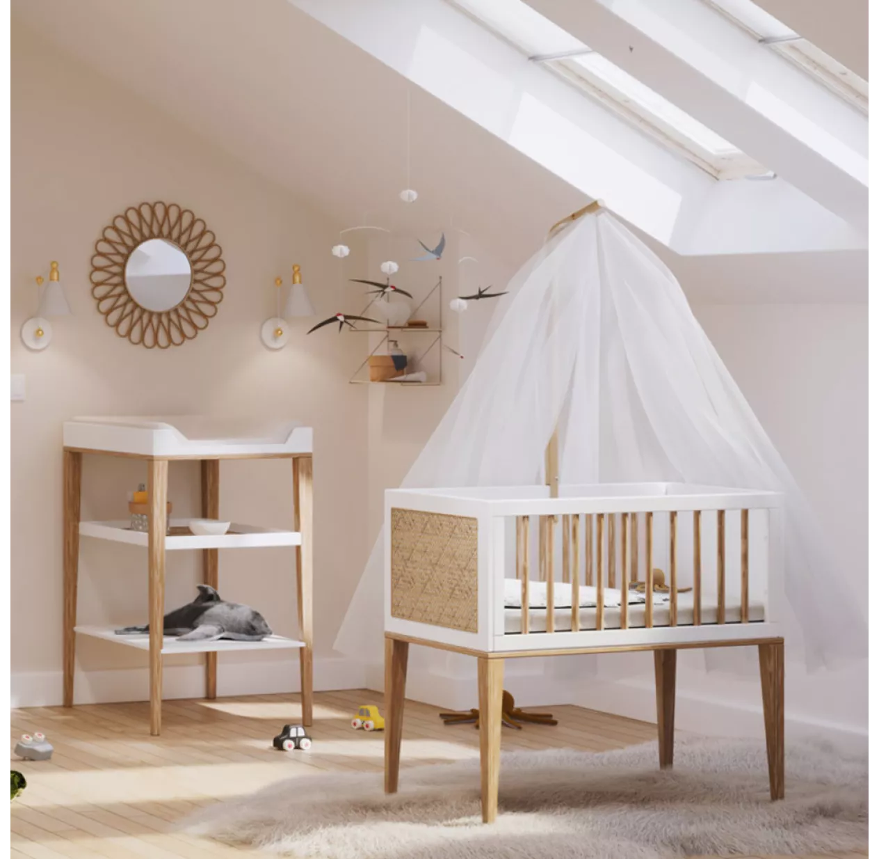 Coup de coeur pour cet adorable berceau en bois massif et cannage rotin. LivrĂ© avec sa flèche, le berceau Nami de ThĂ©o offre un couchage de 50 x 83 cm pour accueillir votre bĂ©bĂ© de la naissance Ă 9 mois environ. On craque pour le style dĂ©licatement rĂ©tro de ce berceau en bois et cannage de rotin. En associant subtilement bois et rotin dans ses collections de mobilier enfant, la marque ThĂ©o propose un style de chambre Ă la fois contemporain et rĂ©tro qui apporte un vent de fraĂ®cheur dans l’univers de la dĂ©co enfant.