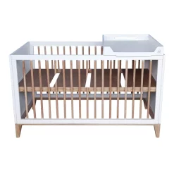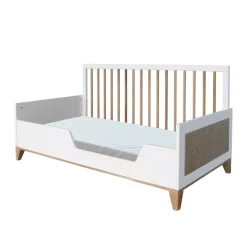 Le lit bébé Nami Théo est un lit évolutif dont le couchage en 70 x 140 cm permet d’accompagner votre bébé de la naissance jusqu’à 5 ans. Son sommier est réglable en 3 hauteurs. Le lit bébé Nami peut être associé au plan à langer qui se fixe directement sur les rebords du lit. Un kit de conversion disponible en option vous permet de transformer ce lit bébé en un élégant lit junior. Le design sobre et épuré du lit Nami Théo est idéal pour une chambre bébé durable. En associant subtilement bois et rotin dans ses collections de mobilier enfant, la marque Théo propose un style de chambre à la fois contemporain et rétro qui apporte un vent de fraîcheur dans l’univers de la déco enfant.