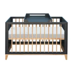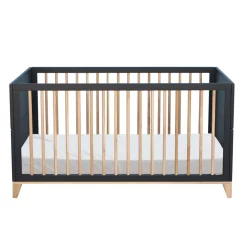 Theo Lit Bébé évolutif Bois Et Cannage Rotin Nami 70x140cm – Noir