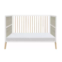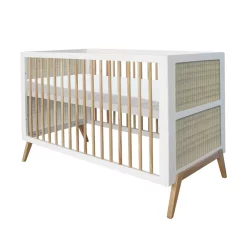 Le lit bébé Marélia Théo est un lit évolutif dont le couchage en 70 x 140 cm permet d’accompagner votre bébé de la naissance jusqu’à 5 ans. Son sommier est réglable en 3 hauteurs. Le lit bébé Marélia peut être associé au plan à langer qui se fixe directement sur les rebords du lit. Il se transforme en un élégant lit junior en retirant simplement un côté des barreaux. Le design sobre et épuré du lit Marélia Théo est idéal pour une chambre bébé durable. En associant subtilement bois et rotin dans ses collections de mobilier enfant, la marque Théo propose un style de chambre à la fois contemporain et rétro qui apporte un vent de fraîcheur dans l’univers de la déco enfant.