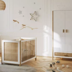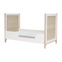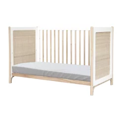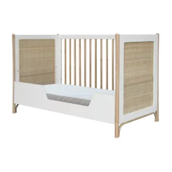 Le lit bébé Océania Théo est un lit évolutif dont le couchage en 60 x 120 cm permet d’accompagner votre bébé de la naissance jusqu’à 3 ans environ. Son sommier est réglables en 2 hauteurs. Le lit bébé Océania peut être associé au plan à langer qui se fixe directement sur les rebords du lit. Un kit de conversion disponible en option vous permet de transformer ce lit bébé en un élégant lit junior. Le design sobre et épuré du lit Océania Théo est idéal pour une chambre bébé durable. En associant subtilement bois et rotin dans ses collections de mobilier enfant, la marque Théo propose un style de chambre à la fois contemporain et rétro qui apporte un vent de fraîcheur dans l’univers de la déco enfant.
