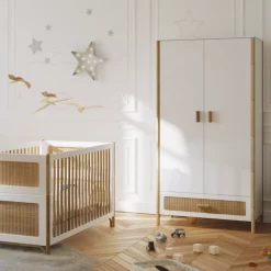 Le lit bébé Océania Théo est un lit évolutif dont le couchage en 70 x 140 cm permet d’accompagner votre bébé de la naissance jusqu’à 5 ans. Son sommier est réglables en 3 hauteurs. Le lit bébé Océania peut être associé au plan à langer qui se fixe directement sur les rebords du lit. Un kit de conversion disponible en option vous permet de transformer ce lit bébé en un élégant lit junior. Le design sobre et épuré du lit Océania Théo est idéal pour une chambre bébé durable. En associant subtilement bois et rotin dans ses collections de mobilier enfant, la marque Théo propose un style de chambre à la fois contemporain et rétro qui apporte un vent de fraîcheur dans l’univers de la déco enfant.
