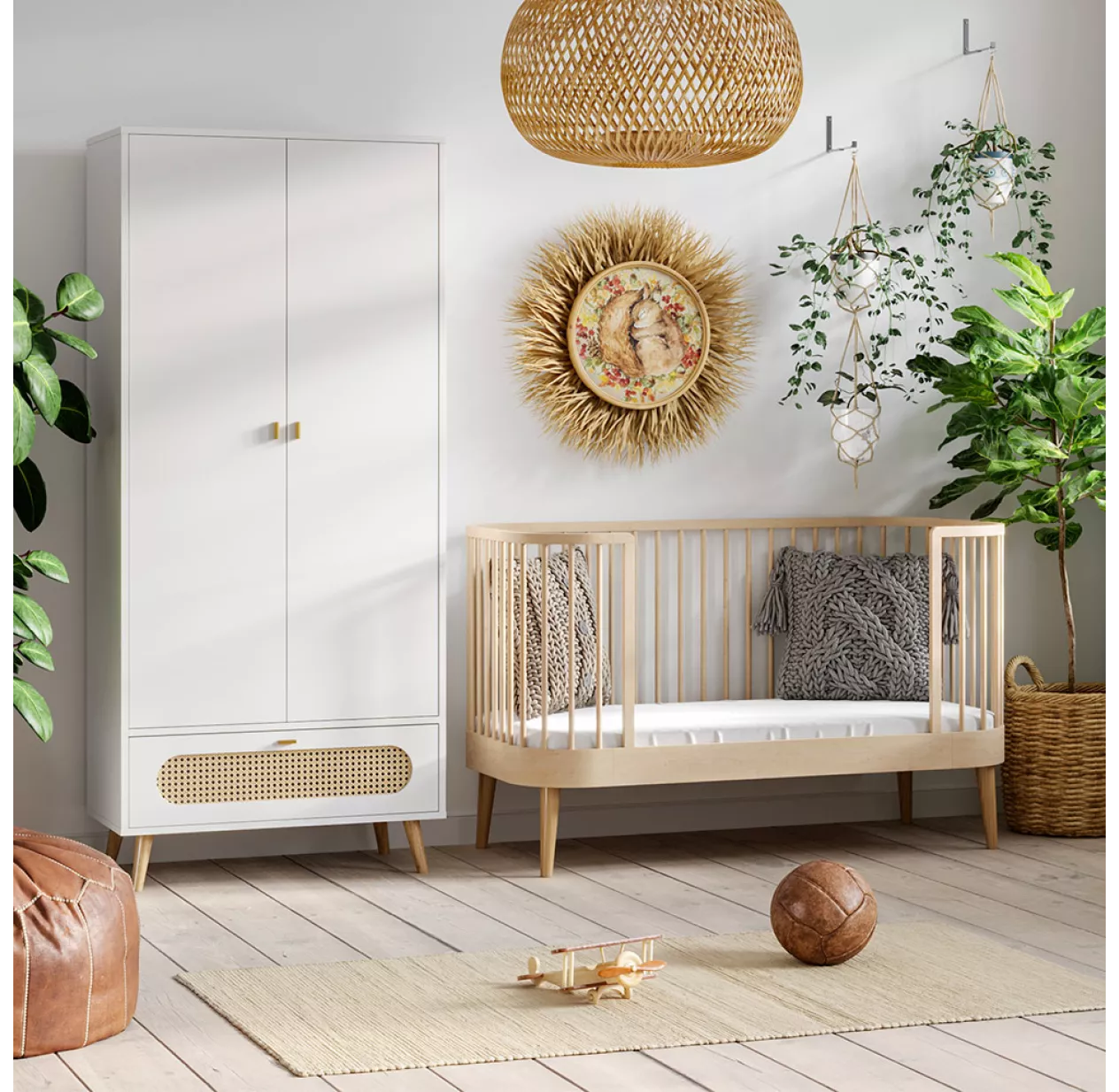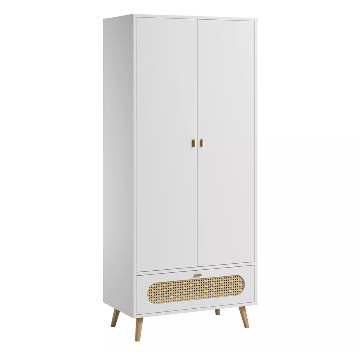 L’armoire Canne de Vox s’inspire de la tendance dĂ©co rĂ©tro du mobilier en cannage. Un style Ă©lĂ©gant et vintage, pour une chambre de bĂ©bĂ© ou d’enfant actuelle. L’armoire Canne s’associe Ă toute les pièces de la collection pour offrir une chambre complète. Son amĂ©nagement intĂ©rieur est optimal : 1 penderie, 1 Ă©tagère et 1 tiroir infĂ©rieur vous permettent de ranger les affaires de vos enfants de manière optimale.Â