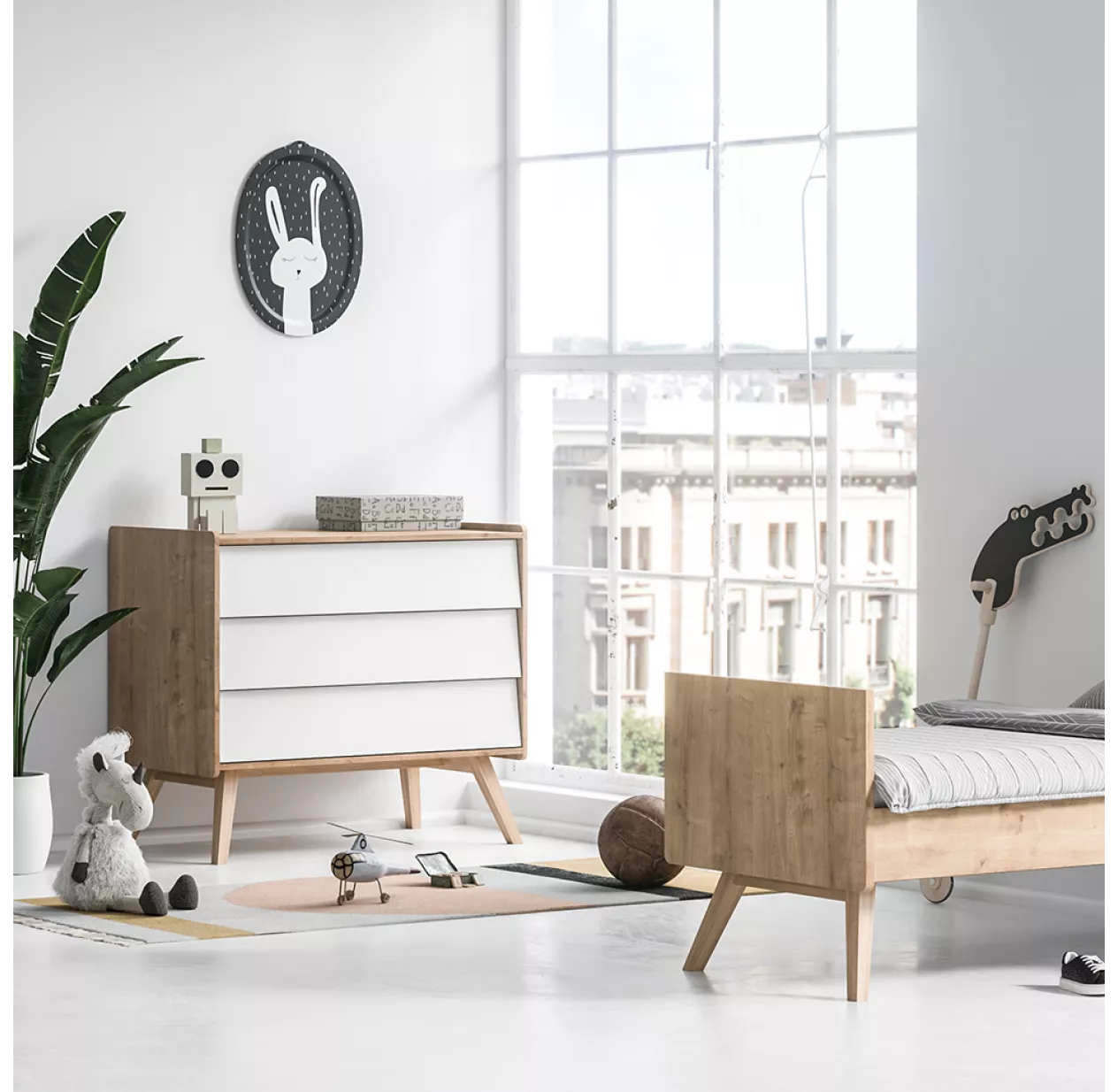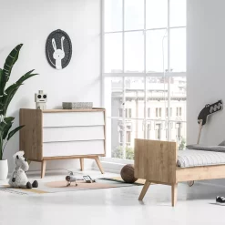 VOX Commode 3 Tiroirs à Langer Vintage – Chêne/Blanc