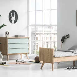 VOX Commode 3 Tiroirs à Langer Vintage – Chêne/Vert