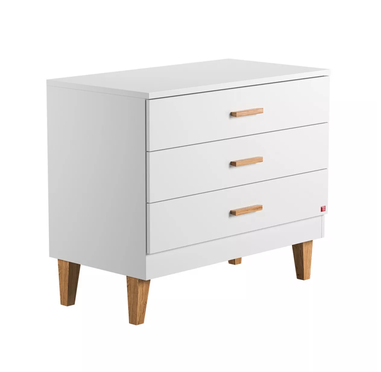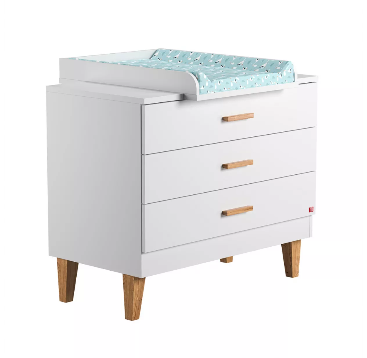 La commode blanche de la collection Lounge mêle intemporalité et sobriété. A associer au plan à langer de la même collection (vendu séparément), pour une chambre de bébé fonctionnelle. Idéale pour ranger les petits vêtements de votre enfant, la commode est un gain de place assuré. Vous allez adorer la collection Lounge imaginée spécialement pour les bébés ; commode avec plan à langer, armoire et lit bébé pour créer une chambre complète et esthétique.